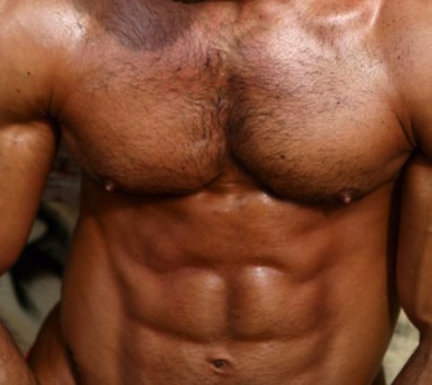 Above, is one example — a man with great pecs and abs and with natural hair that covers just his pecs and upper chest. The hair isn't so thick you could braid it, but it's good and truly there, just the same.