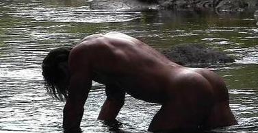 And now we come to my own personal fave. I'll tell you why I love this photo so much. Our hero — and he is a hero — is in some kind of pain. He needs help. There he is, naked on all fours in a river. And who doesn't just want to dive in and help him?When I first saw this photo, it reminded me of the moment when Bethie is out gathering moss for Belle's diapers and sees Nicholas bathing in the river. I just stare at this photo and think of that. And all is right with the world... even on a Monday!