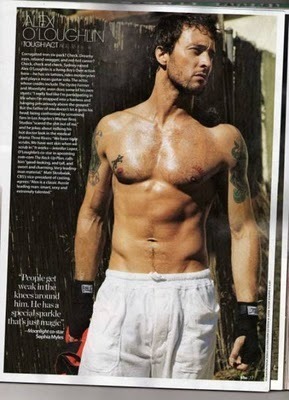 And we end this week's MTM with a photo of Alex O, also in boxing gloves. (What is the connection between boxing gloves and tats, anyway? Alex is indisputably snaxy, smexy and hot. I wish I knew which of those tattoos were real and which I could lick off.