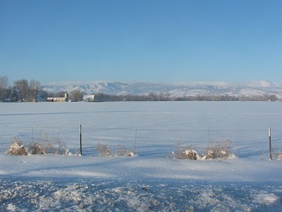 Una vista de las estribaciones tomado la ventana de mi coche durante mi viaje matutino. La temperatura era de -8 F/-13 C.