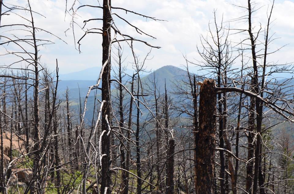On our way up to Scarlet/Ned, we stopped to hike up to the Crow's Nest, a feature on a parcel of country open space that gives you a 360-degree view of everything. The view below looks out over the damage caused by the Four Mile Canyon fire toward Sugarloaf, that rounded mountain just to the right of the dead tree. Sugarloaf is the place Chaska takes Naomi to watch the sunset. It truly does have the best views of the area.