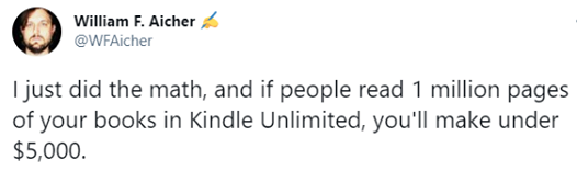 Kindle Unlimited is a good trade-off for nobodies like myself to get eyes on books that people might not otherwise see... However--