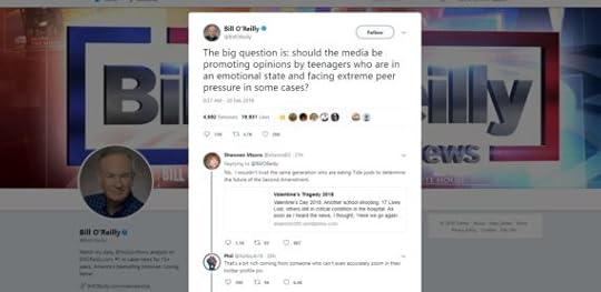 Apparently now is not the time to interview students and let them have a say because “Mr. Empathy,” O’Reilly, questioned whether or not the media should be promoting “opinions by teenagers who are in an emotional state and facing extreme peer pressure in some cases?”