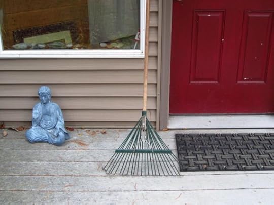 Thursday is trash day at the cove. I put out my one receptible of trash and my accompanying recycling bin and made my way back down the driveway to retrieve my metal rake. Mr. B was going to take on neighborhood clean-up duties.