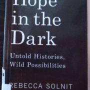 Rebecca Solnit is an American writer and activist. She’s been engaged in environmental and human rights campaigns since the 1980s. Her writing is informed by a life lived with boots firmly planted in real life and direct action work, not academic posturing. Maybe that’s why her book, Hope in the Dark: Untold Histories, Wild Possibilities, has made such a strong impression on me over the past two weeks as I made my way through it.