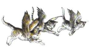 La señora Tabby es una gata que vive en la gran ciudad y que una noche tiene un sueño: podía volar y escapar a otros lares. Aunque se quedó bastante confusa, no le dio mayor importancia, pues todo el mundo sabe que los gatos no vuelan. Sin embargo, sus cachorros nacen con alas. Como el callejón en el que está su hogar se está convirtiendo en un lugar peligroso para críar a su prole, su madre les animará a que salgan volando y se marchen a vivir al campo. Pero deberán tener cuidado. Los seres humanos no están acostumbrados a lo extraordinario y siempre buscan sacar dinero de ello. Para ello son capaces de las mayores atrocidades, como encerrarlos incluso.