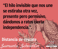 Hace tiempo, en el blog, vimos la reseña de Kentukis, de esta misma autora, en la que se planteaba un futuro posible con mascotas casi capaces de sentir. Con este libro se descubría la fuerza de esta narradora, de modo que me decidí a leer Distancia de rescate (Random House), que trata de otros temas, a ver qué tal.