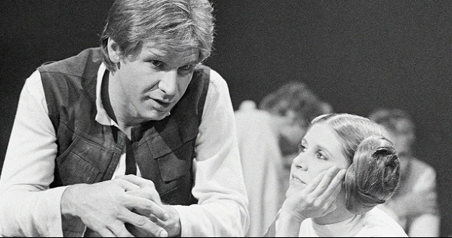 Aparte de explicar que en el espacio no se lleva ropa interior o la famosa historia del peinado de rodetes, Carrie confiesa su romance con su compañero de saga Harrison Ford, que por entonces estaba casado y tenía treinta y nueve años, mientras que ella tenía diecinueve.
