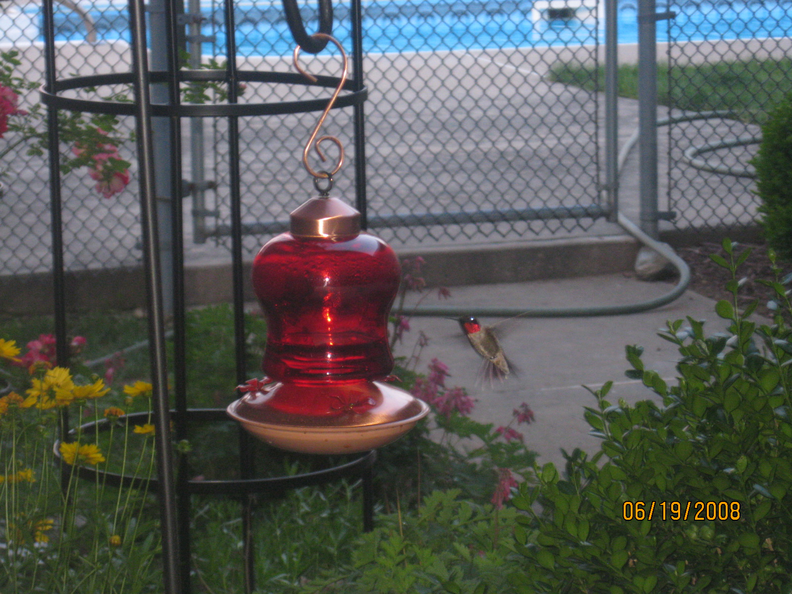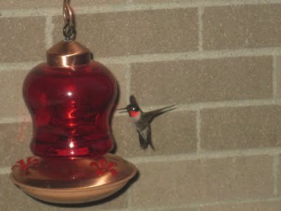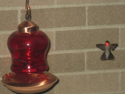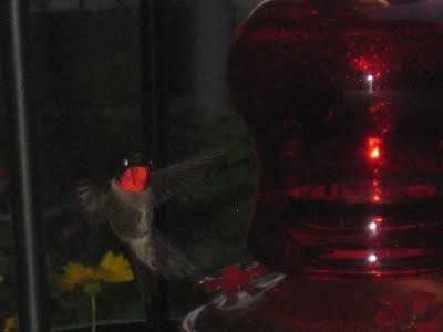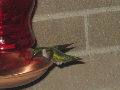 It can't be all zombies and ghosts, can it? How about some other strange creatures, like hummingbirds? Two or three of them visit us on the patio at dinner--here's some photos: