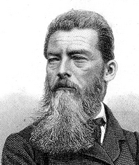 The other main influence on Marx was Ludwig Feuerbach. Rather than agreeing with Hegel that geist or god realizes itself (himself) throughout history, humans create religion as an idealized version of life in this world. [This world is so bad that people imagine a perfect world.] Here Feuerbach uses another idea of Hegel’s—the idea of alienation in which subjects confront objects unknown and alien from themselves. Feuerbach argued that people become alienated when “they project their own human potential into theological fantasies and undervalue their actual lives.” Feuerbach argued that metaphysics and theology are expressions of our emotions disguised as claims about reality. “So he saw religion as symptom of human alienation, from which we must free ourselves by realizing our destiny in this world.”