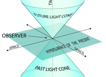A visualisation of the future light cone, the present, and the past light cone in 2D space.