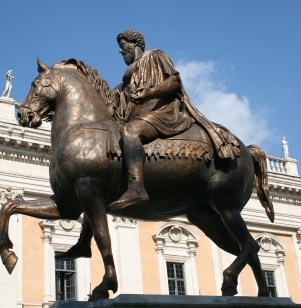 (Statue of Marcus Aurelius in the Piazza del Campidoglio in Rome. The piazze was designed by Renaissance artist and architect Michelangelo Buonarroti in 1536–1546.)