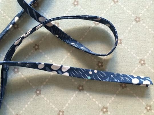 Step 3: Press the bias strip into double fold bias tape. To do this, simply fold the fabric in half, wrong sides together, lining up the top edges, and press. Unfold the fabric, and fold each side into the center crease, being sure not to unpress the first fold. This should leave you with three folds and four sections of equal width. Fold the whole thing closed and give a final press so it looks like the folded bias tape above.