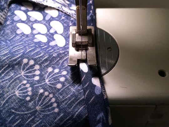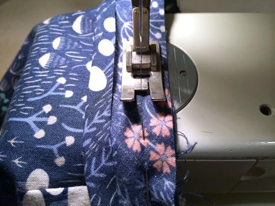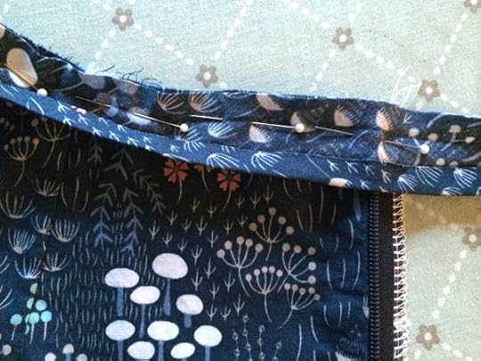Step 5: Sew around the neckline in the groove of the first fold of the bias tape. Sew directly over the zipper, but be careful of any metal on the zipper as this will break your needle. (Ask me how I know!)