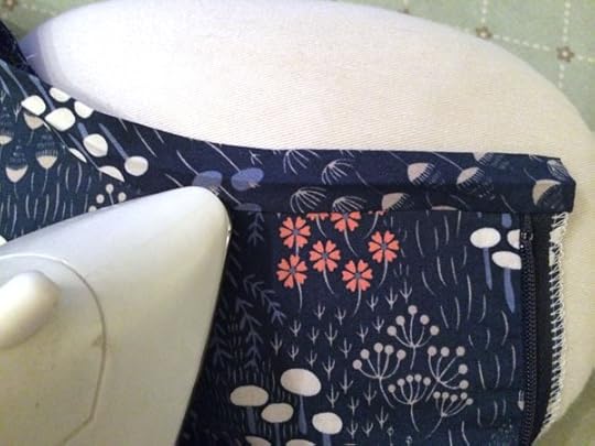 Step 11: Stitch the binding to the neckline, sewing as close as you can to the inside fold of the bias binding. Press the neckline well after sewing.