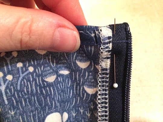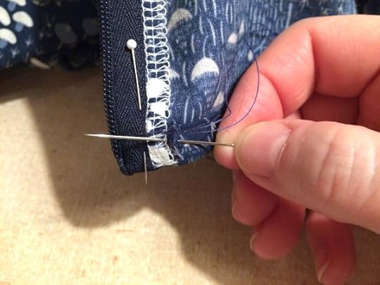 Step 13: Handsew the seam allowance to the bias binding around the top edge of the zipper tape. Repeat on the other side of the top of the zipper. You can also install a hook and eye if you have a gap between the two sides.