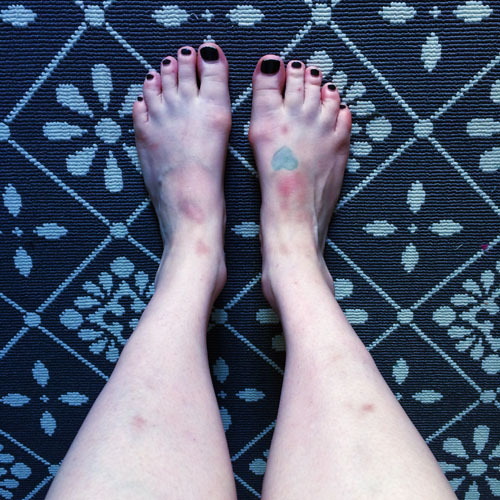 (Note- my former training required me to wear shoes while kicking, so that's largely why my feet are bruising so badly, because they've never been hit like this before. Also, the bruising will calm down with time, so don't think that I (or you if you try this) will be bruised this bad forever!)