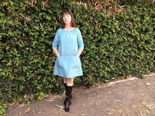I made my version from a soft cotton and linen blend that I picked up at the Los Angeles branch of The Fabric Store. It is a great weight for this dress, though a rayon or something with good drape would be even nicer. I think a quilt weight might be a bit stiff for my personal taste with this dress shape.