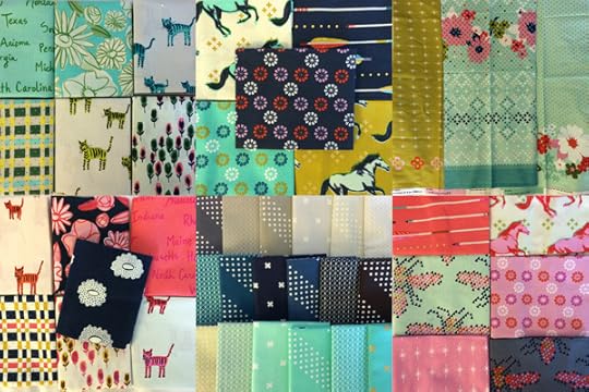 my sample spree haul :)Okay, so for those of you that don't know, Sample Spree is where people can come in and buy fat quarters and other things from the company's booths before it all ships later in the year. So, for C+S, their fabric ships in July, but if you were at spree, you could get your hands on some of it NOW! You see how this can mess with your mind, right? The doors opened, the people RAN towards the booth and then loaded up armfuls of fabric! Melody's husband and I sat on the floor under the tables and threw all the fabric up on the tables and into the hands of the happy shoppers, until the back stock was empty, which was exactly 10 minutes. Yep, 10 minutes and all the C+S fabric was gone! After that madness ended we hit dinner and then passed out!