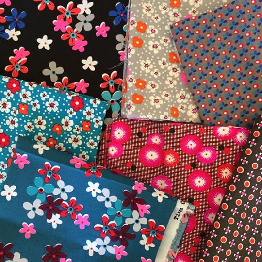 I loved everything in Petit Pan, but I know that my wearable fabric taste is getting calmer and calmer, so their vivid colors were perhaps a bit too much for me to wear. But as much as my clothing palate is getting quieter, my desire to make fun quilts is growing and growing. So I knew that a bundle of these pretty prints would be a wonderful souvenir to bring back and make a quilt from.