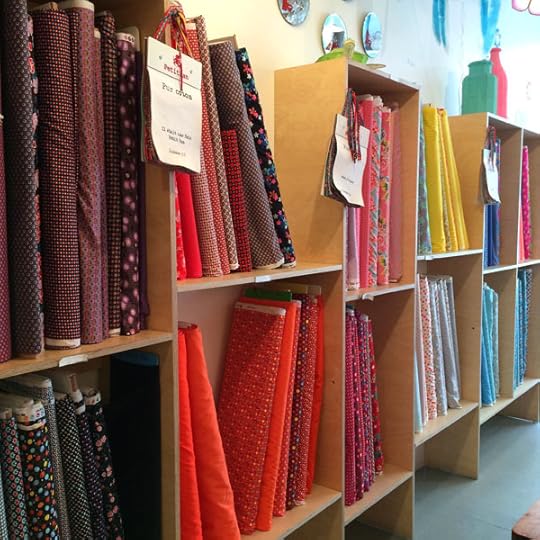 I pride myself on knowing a lot about fabric shops in two cities: LA and Paris. So suffice it to say that when I walked by a shop last week that I had never heard of before, and they were selling the most adorable fabrics, buttons, pre-made piping, bias tape, and more, I just about flipped out.
