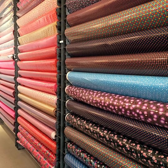 Here's the scene: my man and I were walking home from having gelato. We turned down a street we hadn't walked down before, and on the right side of the side walk appears a shop full of bolts of fabric with adorable florals on them. He turns to me, I smile to him, and in I go. We both know what's about to happen!