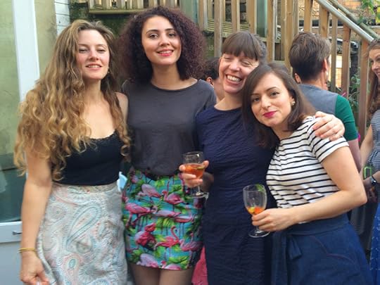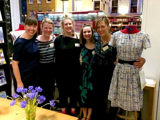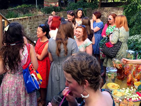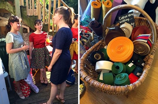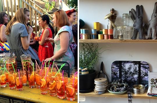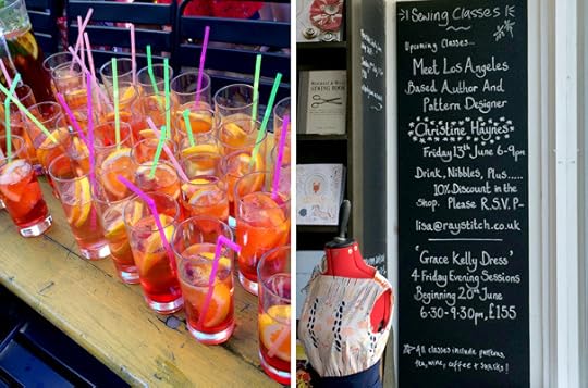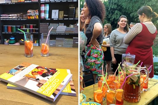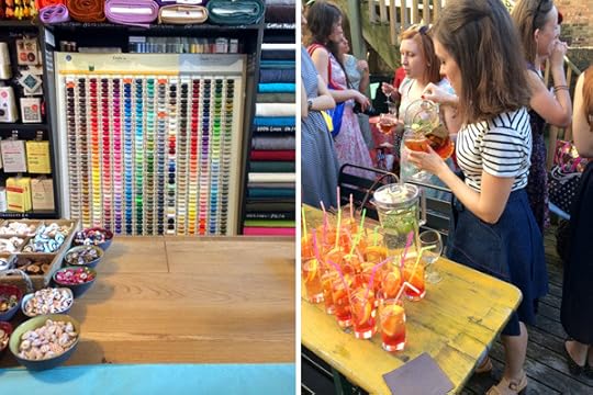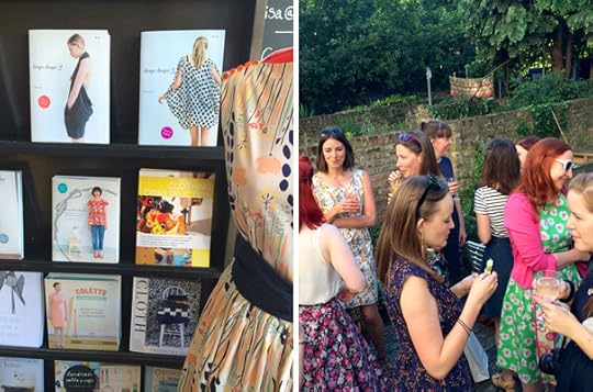 The party was in their delightful shop, full of gorgeous fabrics, indie patterns, and tons of notions, with a cute classroom in the lower level. Out back behind the shop is a patio and garden, which made for the most ideal setting for the gathering, as it was the warmest day of the year in London so far, and everyone was certainly in the mood to sip a cocktail and soak up the warm temperatures.