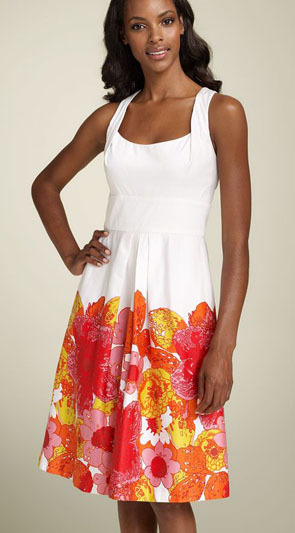 Yes! Truth be told, I wanted to make this skirt pleated. However, that poses a lot of patternmaking issues when you get into sizes above 10 or so. Because the pleats eat so much fabric, the skirt would have to be pieced to make it wide enough for it to work on larger sizes, which is fine, but I really wanted to keep this dress as quick and simple as possible. Also, I loved the idea of featuring a border print, so gathering was a better choice for that. But if you want to pleat your skirt, it would be beautiful so go for it!