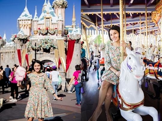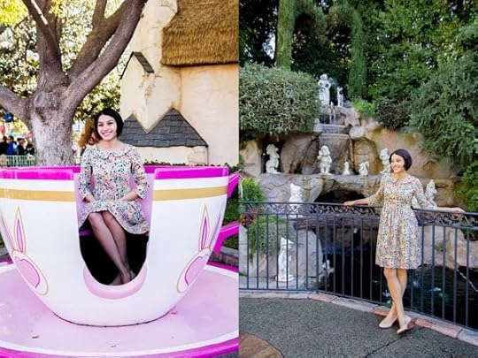 First up is the gorgeous version that my pal Devon (whom you might know of as Miss Make) made for the release of the latest London Calling collection from Robert Kaufman (pictured above and below). Elizabeth who works for Kaufman modeled the dress and Nichole (who also works for Kaufman) shot the lovely photos, at none other than Disneyland! Could you die at how adorable these are? I die.