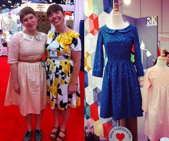 I realized that I didn't post these two Emery Dresses from my Quilt Market post in the Emery Parade last time, and thought they deserved a mention. On the left is me and the kind Lizzy House, both in Emery Dresses. Lizzy's version is made from her adorable Cat Nap collection with Andover Fabrics. On the right is another Emery that Devon made for Robert Kaufman, this time from Carolyn Friedlander's recent Botanics collection.