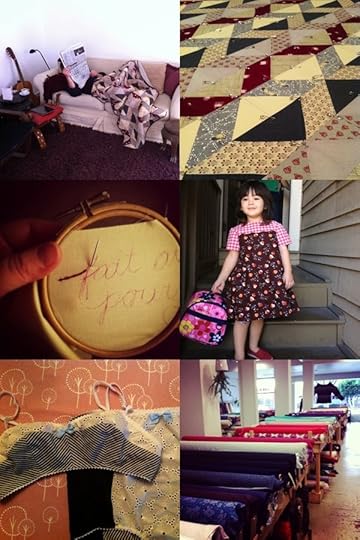 I did a wee bit of non-business and non-dress sewing this year:Made my man a massive quilt and embroidered a secret message on the back in French.Sewed the lovely Olivia a new dress (pattern from Green Bee)!Made myself a matching set of bra and high-waisted panties. Went shopping for more fabric with Sarai (of Colette Patterns) at Mood and The Fabric Store.