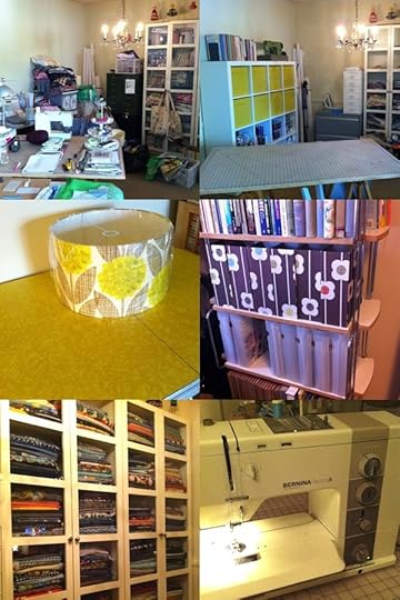 I also got my studio reorganized after finishing the book, which whipped through my studio like a tornado! The top photos are before and after a newly added bookcase! I picked up a vintage yellow table to be my new desk and splurged on an Orla Kiely hanging lamp.Added some Orla Kiely organization bins to my book case for hiding all my magazines.The fabric stash was organized: the left side are works in progress and washed fabrics, the right side is unwashed yardage.And after being paid for the book, I bought myself a new (old) machine! I LOVE HER.