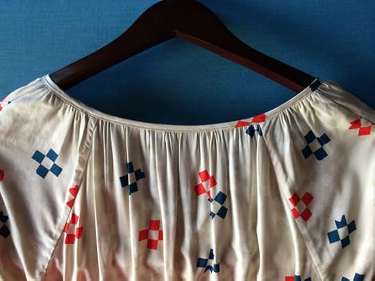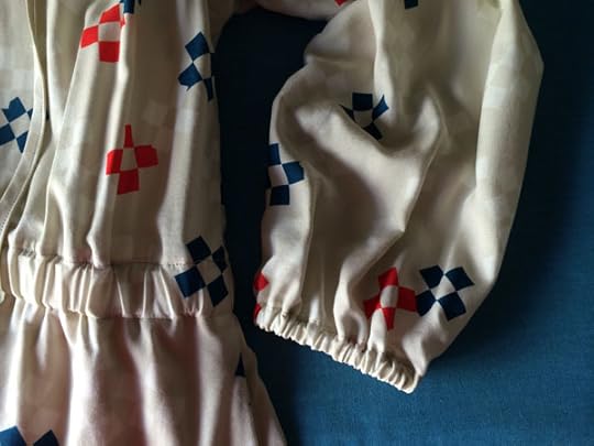 Subtracted 2" from the length of the topAdded 2" to the length of the skirtSubtracted 3 1/2" from the length of the sleevesChanged the bound sleeve hem to an elastic casingFully lined the skirtSewed the entire dress with French seams