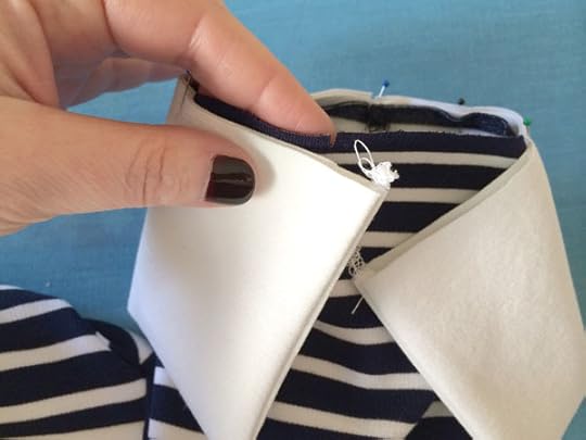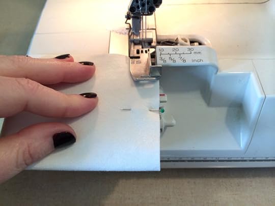 Sew the short ends in place, with a 3/8" seam allowance. If using a serger machine, simply sew it as you've been throughout the making of the dress. If using a conventional machine, use a stretch stitch and then trim the seam allowance down in half after stitching.