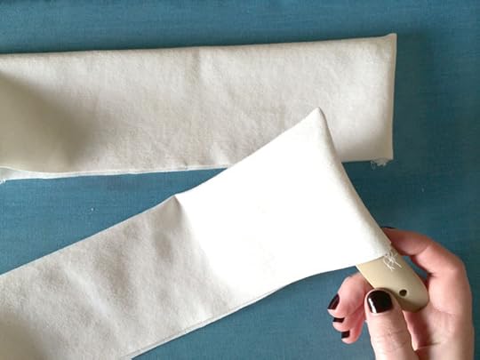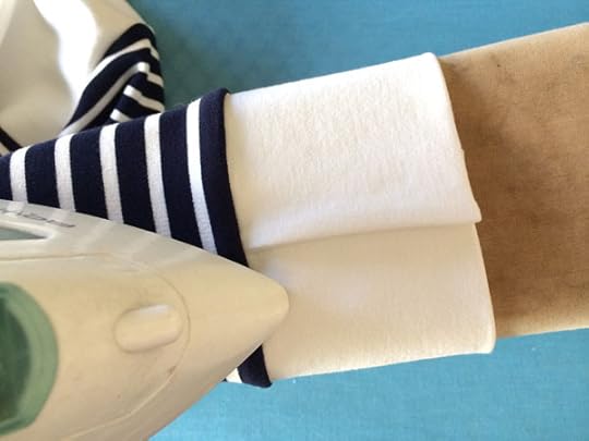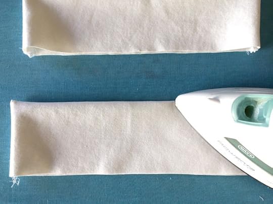 Use an iron to press the short ends flat. Also press the center fold in place as well, making sure the long ends of the cuff pieces stay lined up.