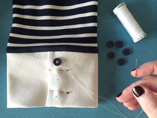Sew your buttons through the two overlapping layers with a needle and thread, and that's it! Woo hoo! Congratulations on finishing up your Marianne Dress!