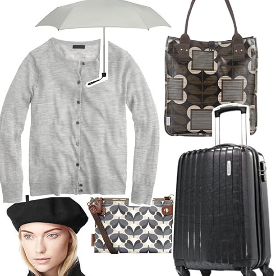 More of my basics coming this year: gray cashmere cardigan, gray folding travel umbrella, large tote bag, carry on hard shell luggage, small over the body bag, and a black wool beret.4. Plan ahead