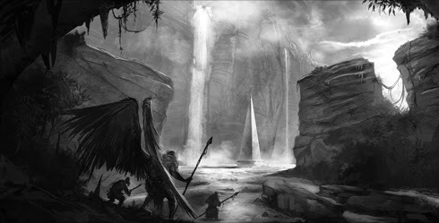 Na imagem da capa, o templo devastado da ilha de Mu e a estátua de Orion, em seu avatar atlante. Arte de Stephan Stolting.