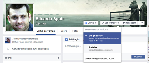 A seguir, passe o mouse sobre o botão "Seguindo" e escolha a opção "Ver Primeiro".