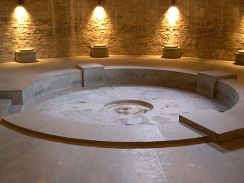 Piscina cerimonial: A pia de cerimônias foi projetada pelos teóricos místicos nazistas, e ficava na ala norte.