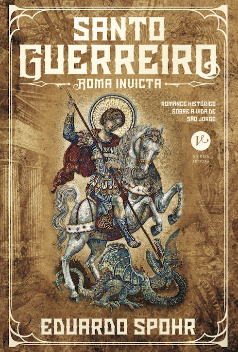 Para celebrar a data, compartilho com vocês uma prévia do primeiro livro — serão três. “Santo Guerreiro: Roma Invicta” começa contando a história dos pais de Georgios (nome grego do santo) e descrevendo a queda do Império de Palmira, um dos territórios que se revoltou contra o poderio dos césares. “Roma Invicta” foca na infância e juventude do personagem principal, desde a fuga de sua cidade de origem até sua consagração como cavaleiro da Púrpura.