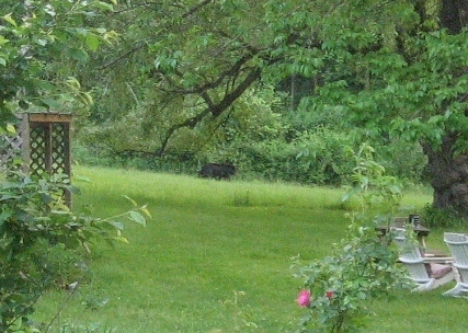 The next was a fox I didn't get a photo of but right after that came the big boy bear in the middle of the day. I waited inside until he was far enough away and then took this: