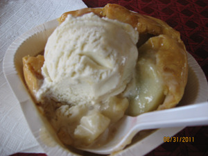 From there we wandered the midways (are there midways in fairs, or is that just carnivals, amusement parks and circuses? Don't know, and am too lazy to look it up) and came upon the potato pancake stand where of course I had to indulge. (I don't think I've ever met a potato I haven't liked. Gave me the urge to make a big batch of latkes.