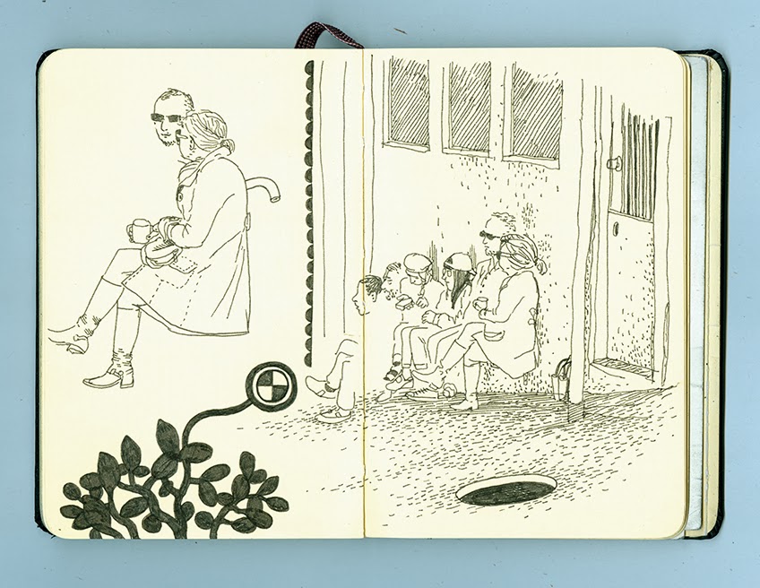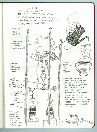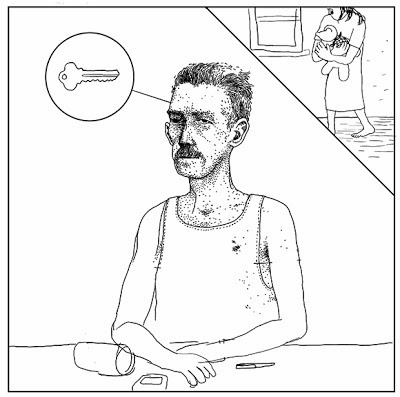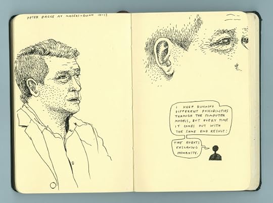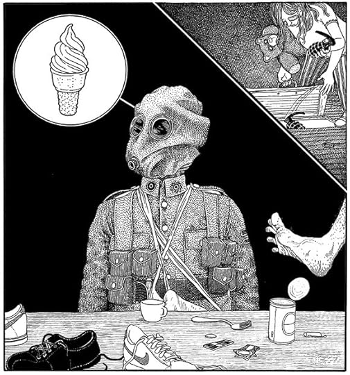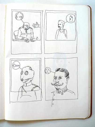 This Summer I did a collaboration with my friend the novelist and skateboarder Kyle Beachy (here he is doing a nose manual). He gave me a few short prose pieces, I chose one and did some illustrations for it. It ended up as a four pager, which has just been published in Make Magazine, in Chicago. The format is similar to Rage of Poseidon – one image on a page with text underneath, though the images are more comic-y and complicated, as above. You can get a copy here.