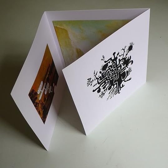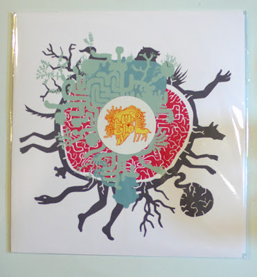 So... these little folded screenprinted portfolios were supposed to be done in time for Autoptic last August. I even listed them on my store site at the time. And got some orders. As it turns out, I didn't finish them until last night. This is the front cover, in its sleeve with a little sticker on the front: