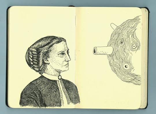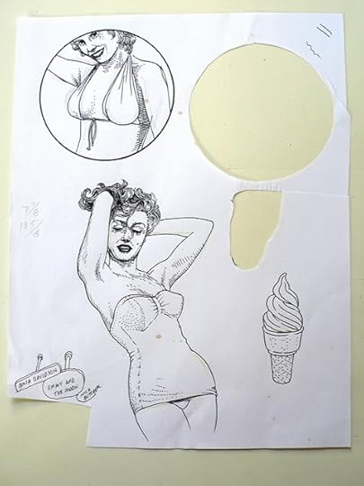 The finished piece is a bunch of variations on some collage comics and drawings from my sketchbooks. The inside was printed by Burlesque, 4 colors approximating CMYK. The outside was printed by me as described above in between 5 and 6 colors depending on which one you get.