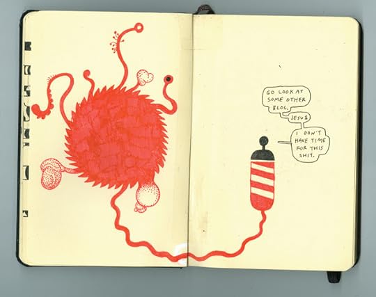 I was driving around earlier today delivering posters and cards for the Saltwater Weather/Eyeworks event. At some point I got in the car, turned the ignition, and the radio came on and I thought: "I know that voice." Turned out it was Zak Sally talking to Euan Kerr about the new Xaime show he just put up at MCAD. Listen here, and then book your flight if you haven't already. The show is great and it's just the earliest rumblings of this giant freight train of awesomeness that is Autoptic.