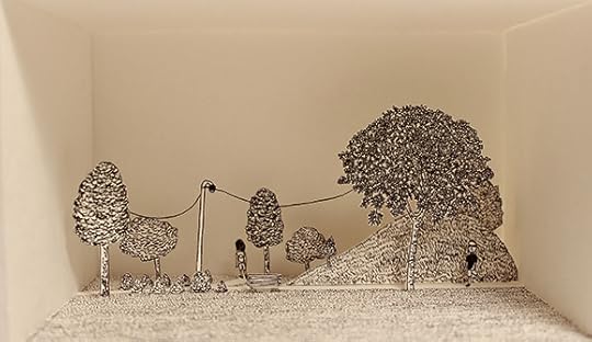 Above is the postcard for the exhibition I am putting together at Co Exhibitions (with June Misserey) presenting non-comics work by some of the artists of PFC4 and Autoptic. Below is some work that will go in the show including (a very small selection of) Lilli Carre's exquisite porcelain sculpture and the cut out miniature drawing installations of Belgium's Emilie Plateau. So much great stuff. The reception is Tuesday, August 13th.