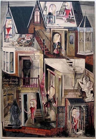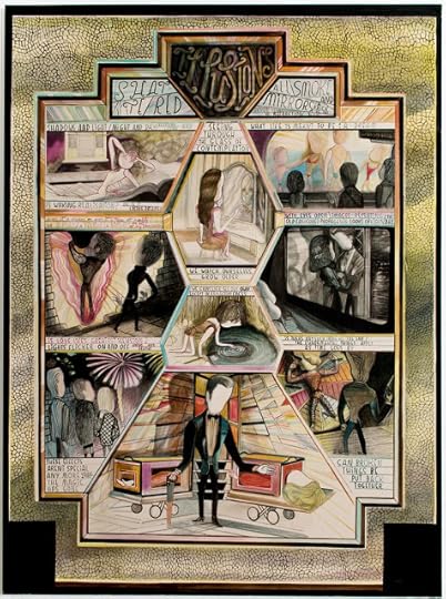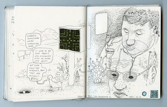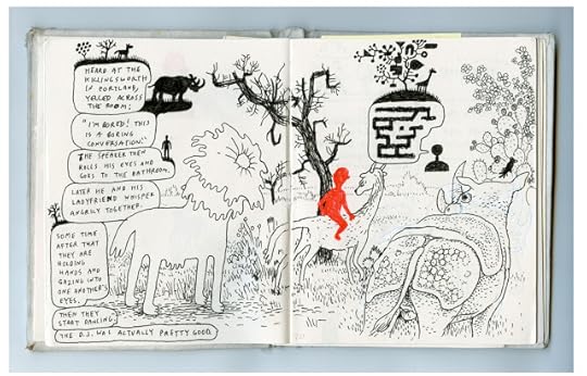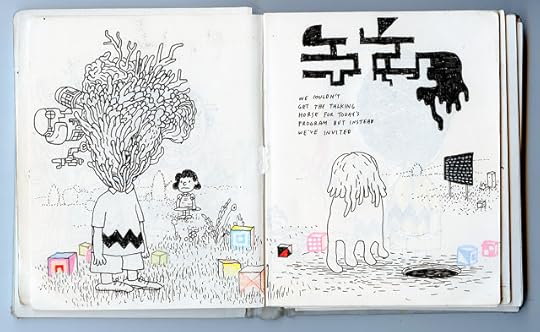 I have a bunch of work in a show called Comic Tragics at the Art Gallery of Western Australia at the moment. The Guardian just did a nice little piece about it, showing a few pages by Ron Rege (who also did an amazing wall-drawing for the show), Gabrielle Bell, Dash Shaw and others, including one Emma Talbot, who I had not heard of before the invitation to the show. There are a number of reasons why I wish I could have made it out to see the show – not least because I've just never been to Australia – but I'm sorry not to be seeing Talbot's work in person. It looks pretty much unlike anything else – super strange and beautiful, sweet and creepy... and heartbreaking. She does really nice things with panels, something I've been thinking about a fair amount lately, and with facelessness, which is also a thing I can relate to, especially in dealing with similar themes. Surprised I hadn't come across her work before, maybe because she's in the gallery world, rather than the book world. Hopefully that will change.