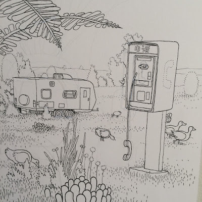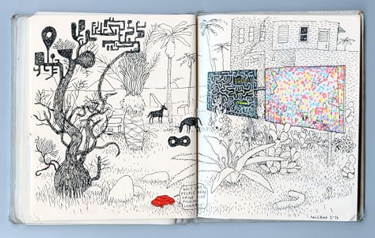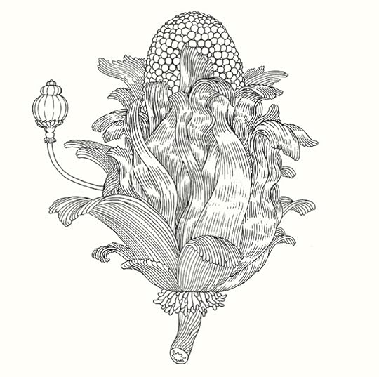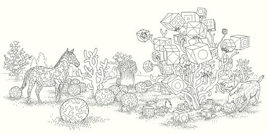 The publisher is Ginkgo (in English) and it turned out that they make beautiful books. They've just started translating some literary graphic novels from the West (mostly France, but it looks like they are also picking up a few North American books – including Big Questions and Dogs and Water), and they were very fairly convincing. After turning the idea over in my head and thinking about what I might do I agreed. I'd had no idea that adult coloring books were a huge thing, and it turned out that several people I know use them, unbeknownst to me. It seemed like an interesting problem to play with, and Ginkgo was open to my ideas. The deal didn't get finalized until late January, and to get the 96 page book out in North America (D+Q is doing it over here) out in time for the holidays – done the way I want to do it – I have to basically do almost a page a day, with minimal chance for revision and none for preciousness. As I write this I'm just over half done, and am rather enjoying it. It's more drawing than I've ever done in a short period of time, but it's a genuinely interesting problem to work that fast, and has me pouring over books of plants and animals, visiting museums and conservatories for inspiration and looking at the world a little differently. I'll be posting pictures as I go for the next few weeks at FB and Instagram, and maybe a few more here as well, depending. Here's the cover and one more image: